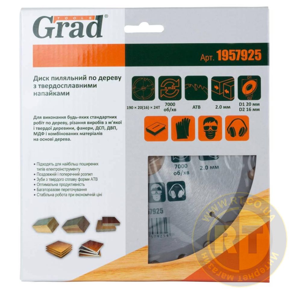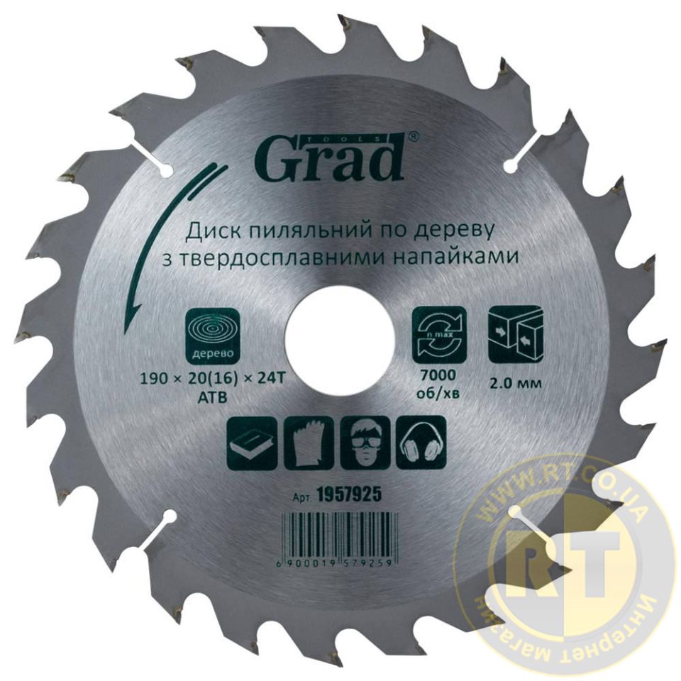 Диск пильный по дереву с твердосплавными напайками 190×32(20;16)×24T GRAD (1957925)