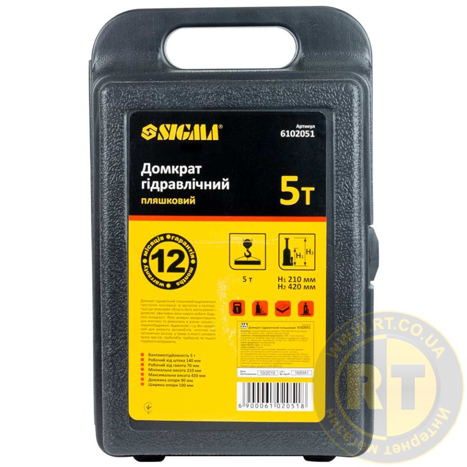 Домкрат гидравлический бутылочный 5т H 210-420мм (кейс) SIGMA (6102051)