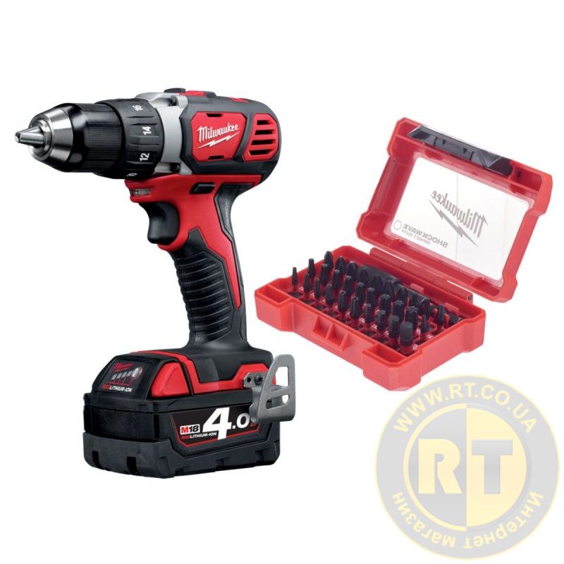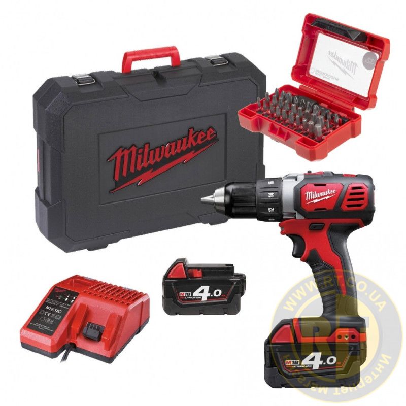 Дрель-шуруповерт аккумуляторная MILWAUKEE M18 BDD-402CA (ЗУ, 2х4Ач, кейс, набор бит 32шт)