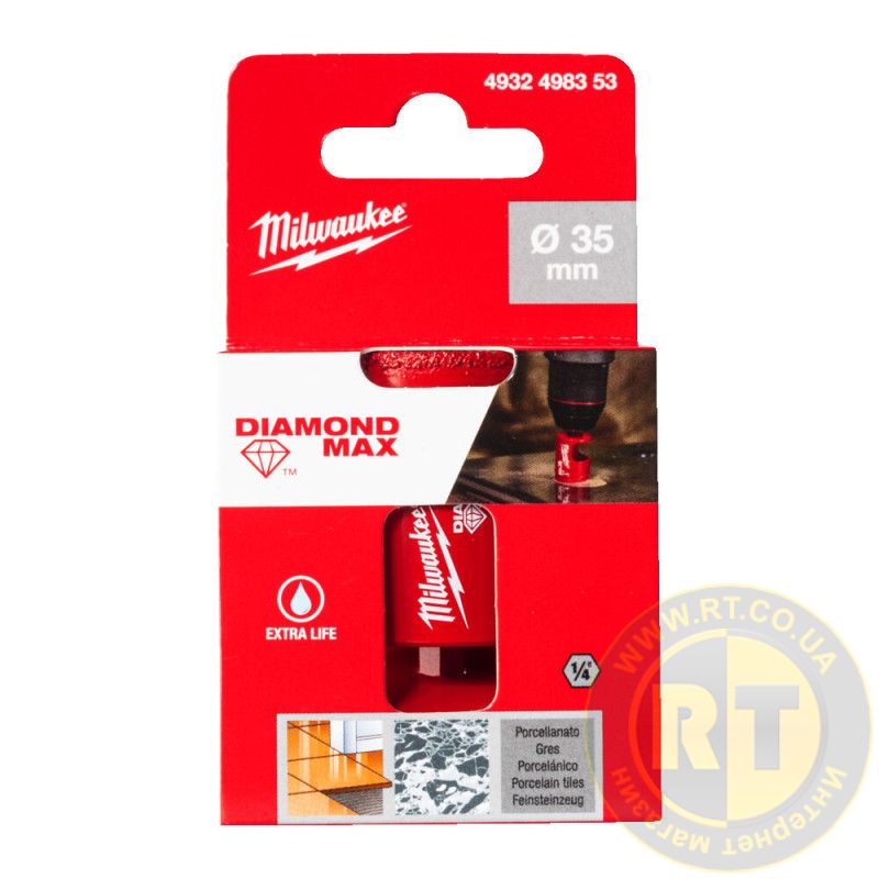 Коронка алмазная Diamond Plus/Max MILWAUKEE, Ø35,0мм (1/4'' Hex) (сверление с водой)