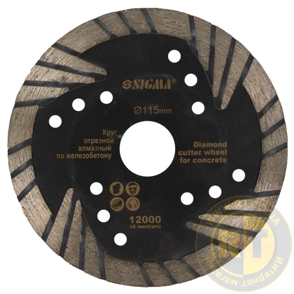 Круг алмазный по железобетону "Турбоволна" Ø115×2.3×22.2мм, 12000об/мин SIGMA (1923121)