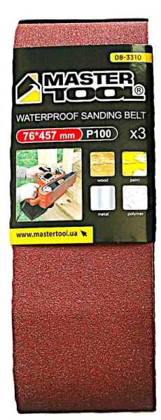 Лента шлифовальная зерно 100 76×457 мм 3 шт MASTERTOOL 08-3310