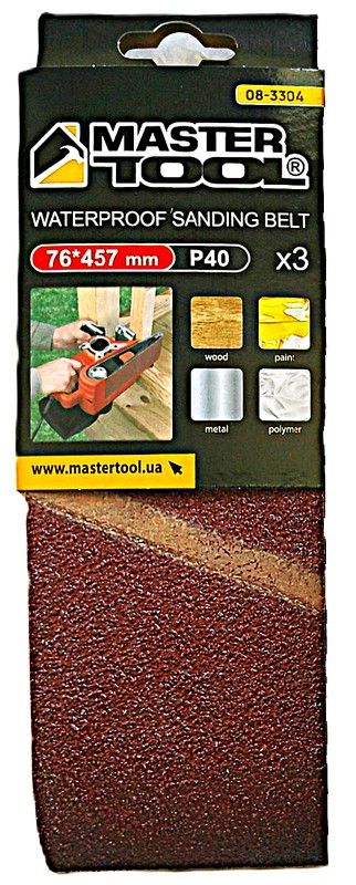 Лента шлифовальная зерно 40 76×457 мм 3 шт MASTERTOOL 08-3304