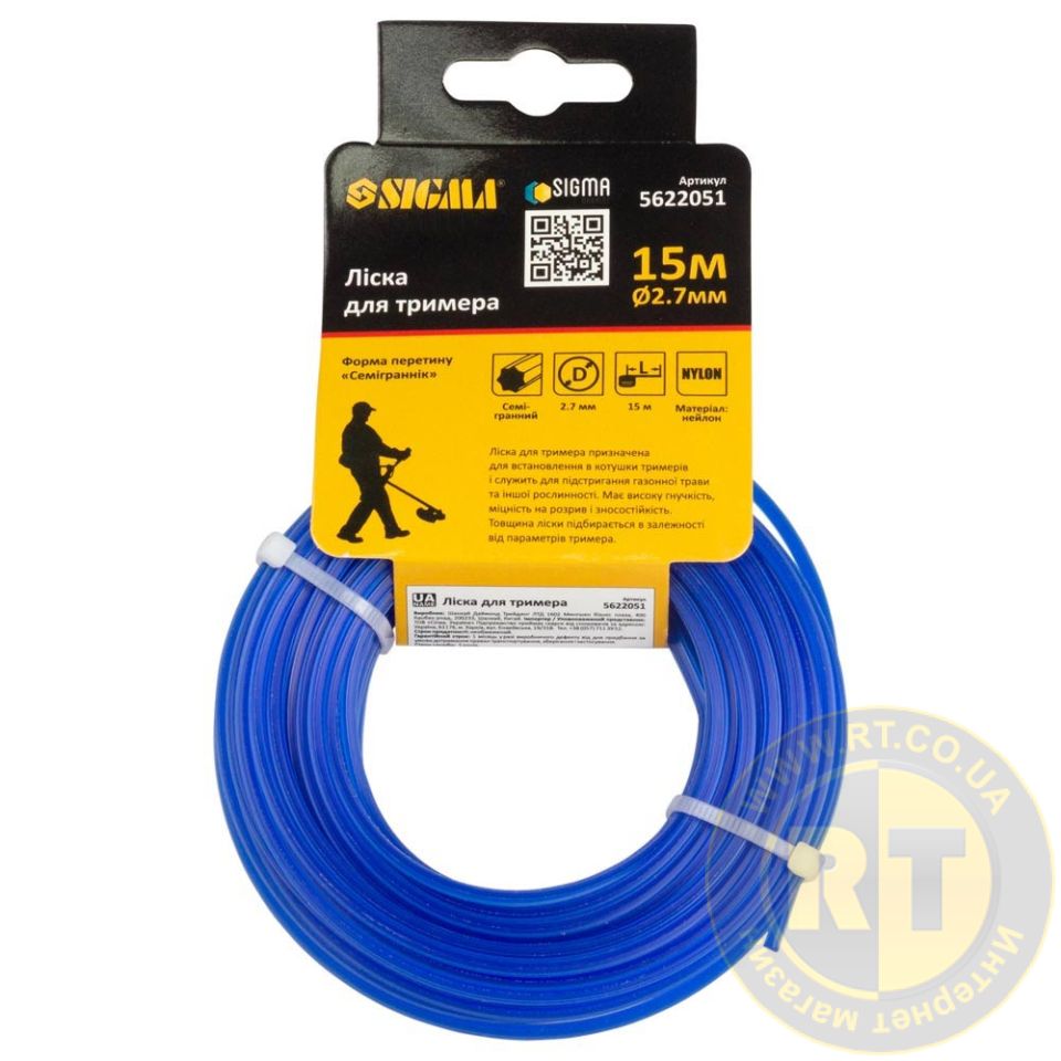 Леска для триммера "семигранник" Ø2.7мм 15м SIGMA (5622051)