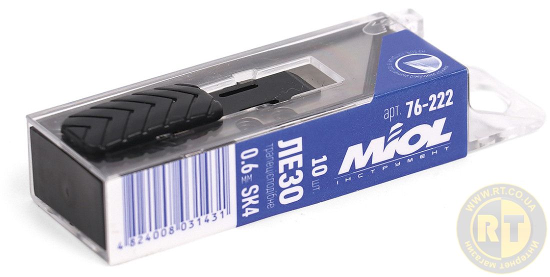 Трапециевидные сменные лезвия Miol изготовлены из высококачественной инструментальной стали SK4, что обеспечивает повышенную прочность, долговечность и долгий срок службы. Предназначены для использования в строительных и канцелярских резачках. Идеально подходят для резки картона, резины, линолеума, пластика, кожи и других материалов.
