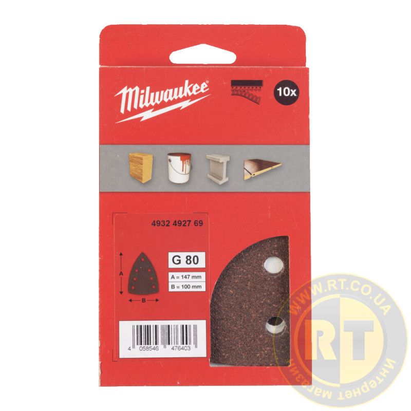 Лист шлифовальный дельтавидный MILWAUKEE, 100х147мм HL, зерно 80 (10шт)