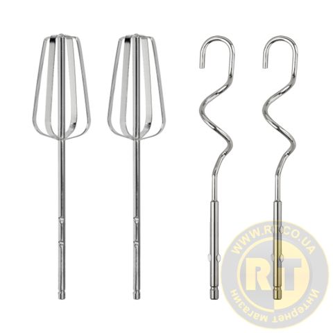 - 2 типа наконечников из нержавеющей стали SS304 устойчивы к коррозии, легко моются (можно мыть в посудомоечной машине) и безопасны для контакта с пищей, не поглощая запахов – венчики полезны для взбивания сливок, сливок или кремов, а крючки справляются с более тяжелым тестом.