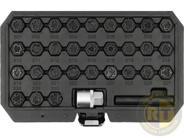 - включает 30 насадок, адаптер для ключей и толкатель.