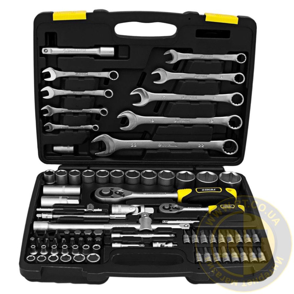 Набор насадок торцевых и бит 1/4", 1/2" 82шт CrV Taiwan SIGMA (6001021) предназначен для работы с резьбовыми соединениями при ремонте и обслуживании автомобилей.  Инструменты изготовлены из хромванадиевой стали и имеют матовое покрытие. Поставляются в ударопрочном, пластмассовом кейсе.