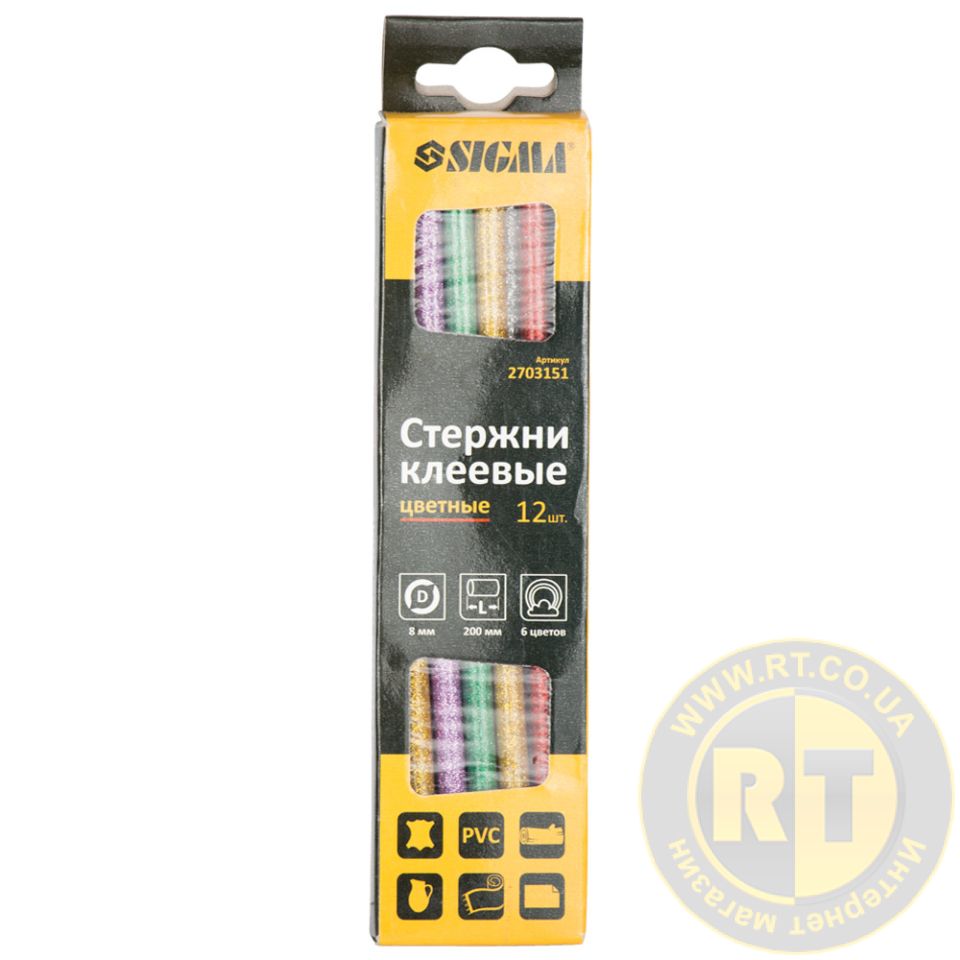 Набор стержней клеевых Ø8×200мм 12шт 0.2кг (цветные) SIGMA (2703151)