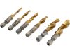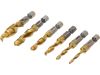 Набор из 6 сверл – метчиков, изготовленных из быстрорежущей стали HSS, что делает сверла чрезвычайно прочными, долговечными и устойчивыми к износу, что позволяет работать на высоких скоростях.