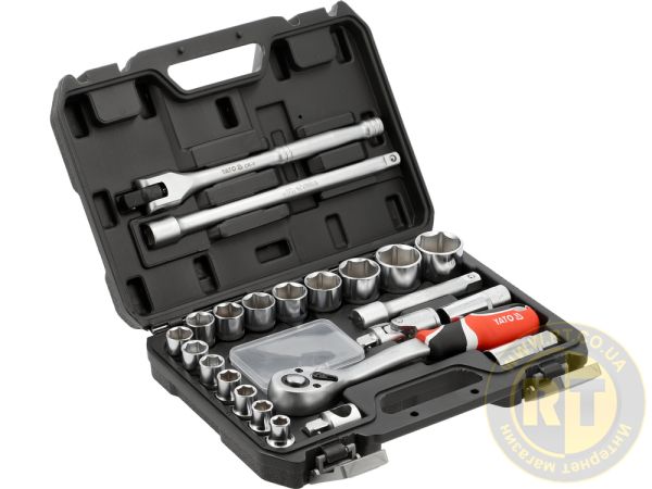 - 15 головок 1/2": 10, 11, 12, 13, 14, 15, 16, 17, 19, 21, 22, 24, 27, 30, 32 мм