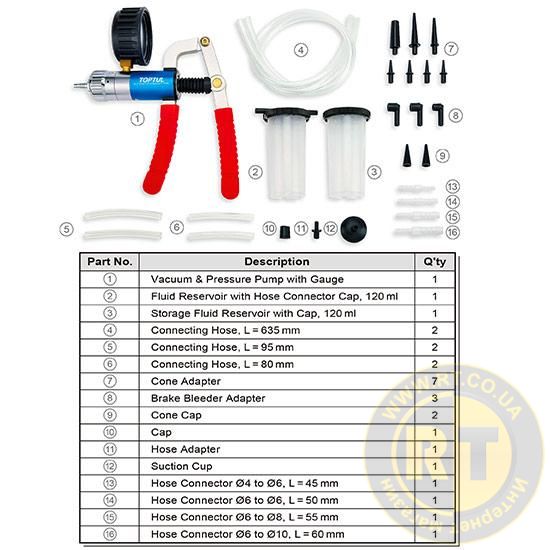 Набор универсальный диагностический для проверки вакуума и давления TOPTUL JGAI0706
