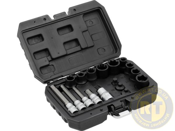 - Головки-битки 3/8": 11 x 100 мм, 7 x 92 мм, 7 x 65 мм, 9 x 50 мм, 7 x 24 мм (короткие), 8 x 24 мм (короткие)