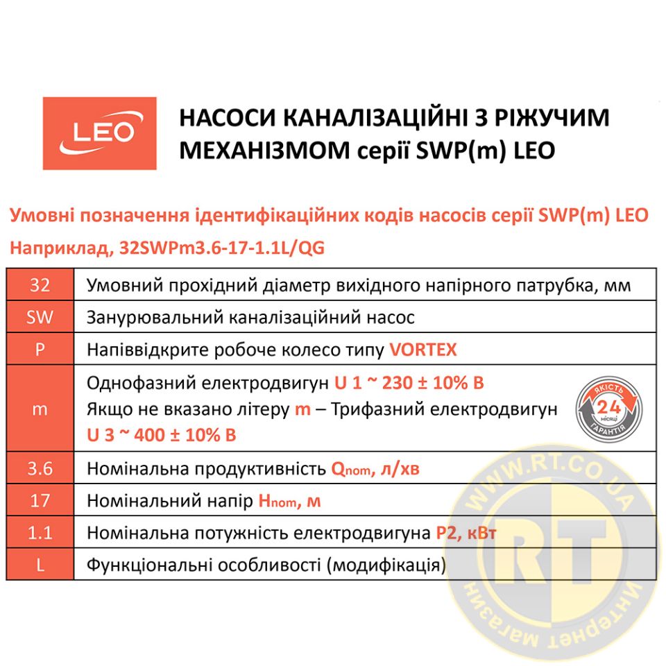 Насос канализационный 1.1кВт Hmax 18м Qmax 140л/мин (с режущим механизмом) LEO 3.0 32SWPm3.6-17-1.1L/QG 773951Насос канализационный 1.1кВт Hmax 18м Qmax 140л/мин (с режущим механизмом) LEO 3.0 32SWPm3.6-17-1.1L/QG 773951. Подробнее...181401100 - Нет в наличии