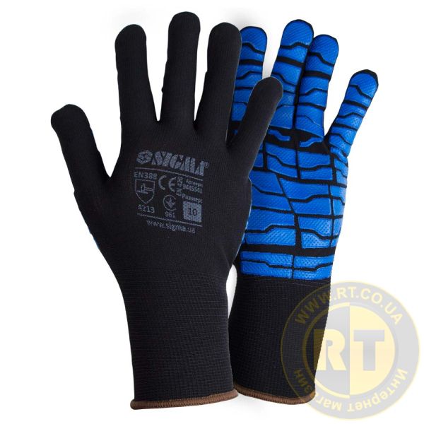 Перчатки трикотажные с латексным покрытием (паутина на ладони) р10 (синие, манжет) SIGMA (9445541) предназначены для защиты от механических воздействий, жира и масла.