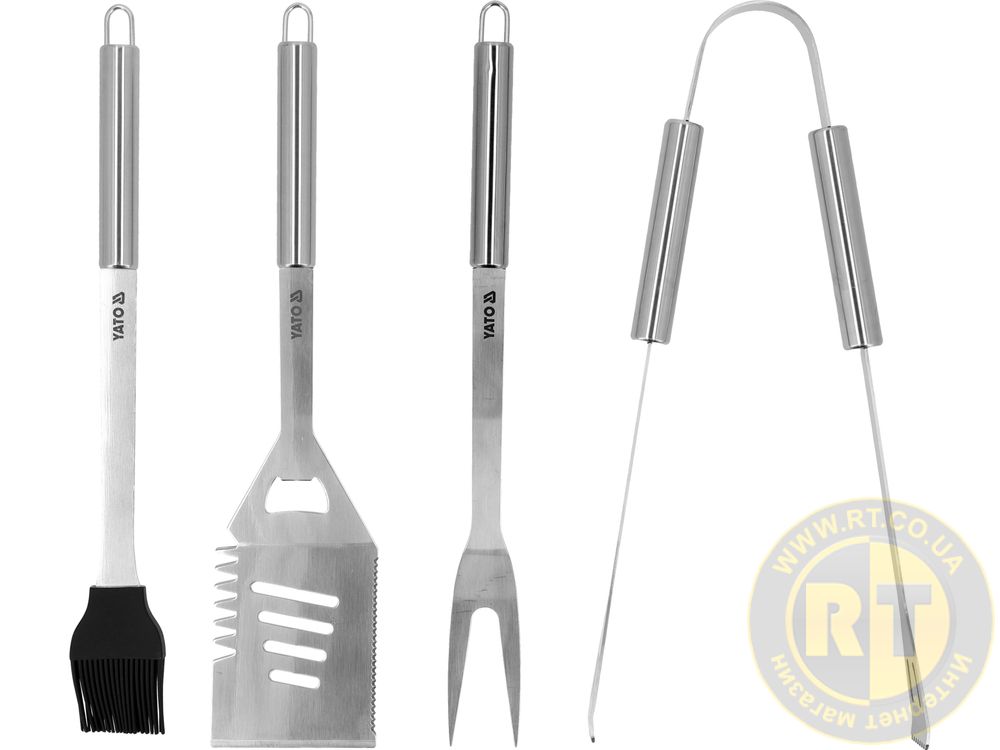Набор столовых приборов из нержавеющей стали, полезных для приготовления на гриле.