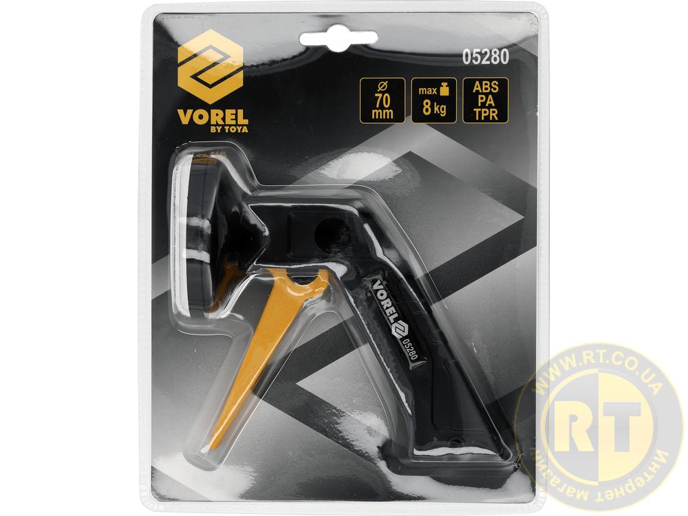 • стабильный подъем и перемещение - присоска диаметром 70 мм обеспечивает надежное прилегание к стеклу и другим гладким материалам, а максимальная нагрузка до 8 кг позволяет безопасно работать с типовыми стеклянными элементами, используемыми при монтаже и отделке.