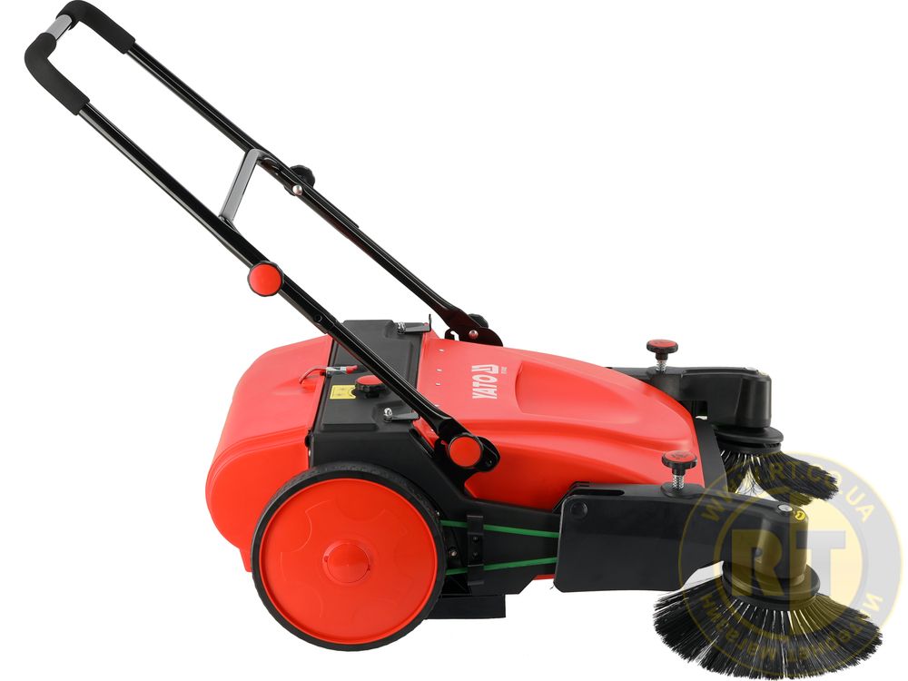 Большая рабочая ширина 950 мм и вместительный 45-литровый мусорный контейнер позволяют эффективно подметать поверхности площадью до 3800 м² в час, что делает его идеальным решением как для частного, так и для профессионального использования.