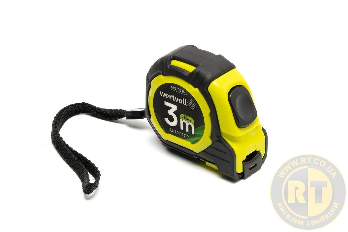 Рулетка 3 м×16 мм две кнопки AUTOSTOP покрытие TPR нейлоновое покрытие противоскользящий крючок MASTERTOOL MS-0316