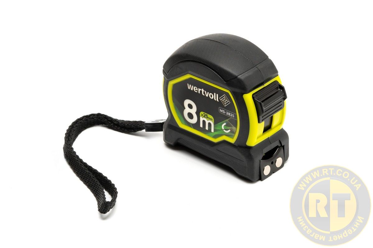 Рулетка 8 м×25 мм с магнитами фиксатор полотна покрытие TPR нейлоновое покрытие MASTERTOOL MS-2825