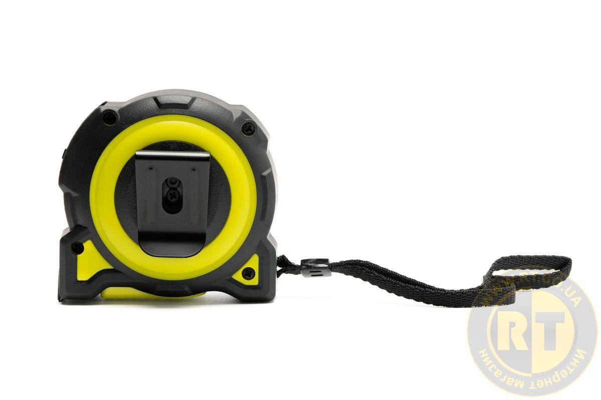 Противоскользящий крючок гарантирует надежный захват поверхности, а корпус с TPR покрытием защищает рулетку от ударов и обеспечивает комфортное удержание.