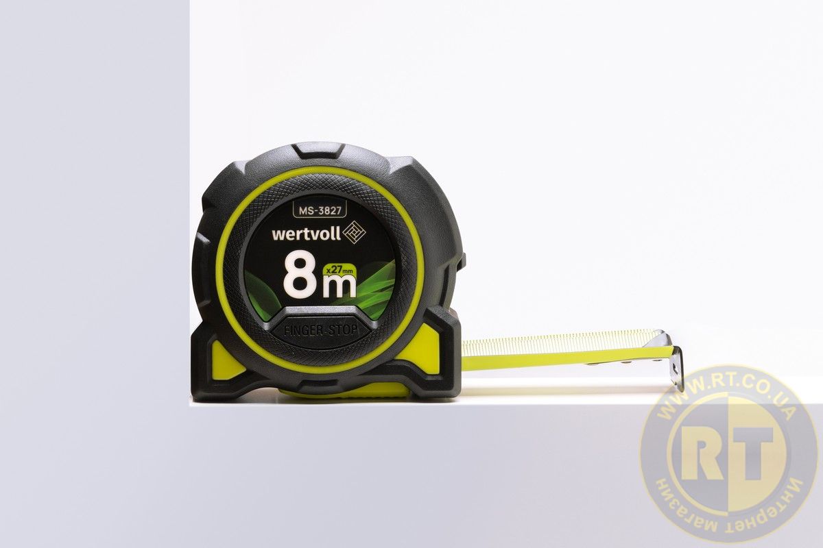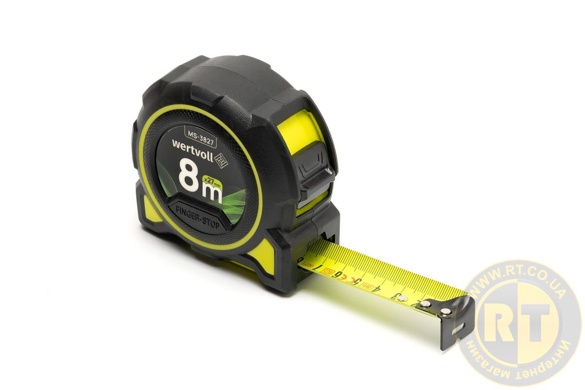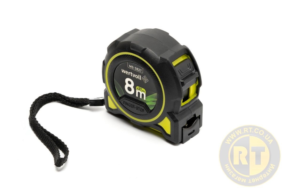 Рулетка 8 м х 27 мм фиксатор полотна кнопка STOP покрытие TPR нейлоновое покрытие противоскользящий крючок MASTERTOOL MS-3827