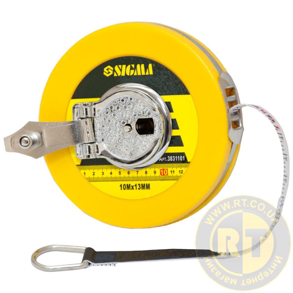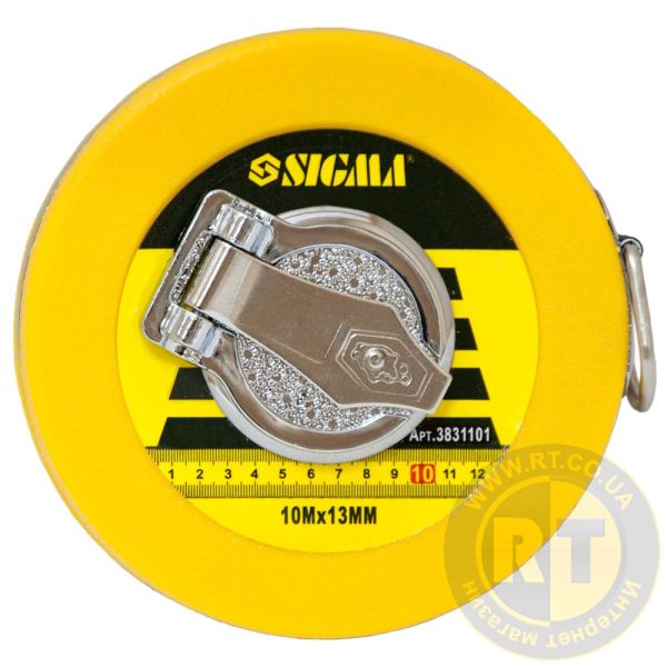 Рулетка стекловолокно 10м×13мм SIGMA (3831101) - особенностью стекловолоконных рулеток является возможность измерения больших расстояний за счет увеличенной прочности ленты с низким коэффициентом растяжения.