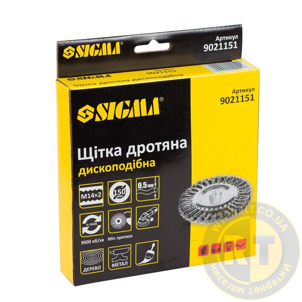 Щетка проволочная дискообразная Ø150мм М14×2мм (стальная витая) SIGMA (9021151)
