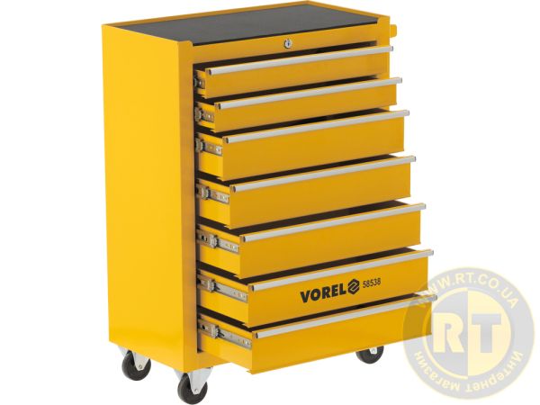 Прочный сервисный шкаф с 7 ящиками позволяет легко упорядочивать и быстро получать доступ к инструментам.