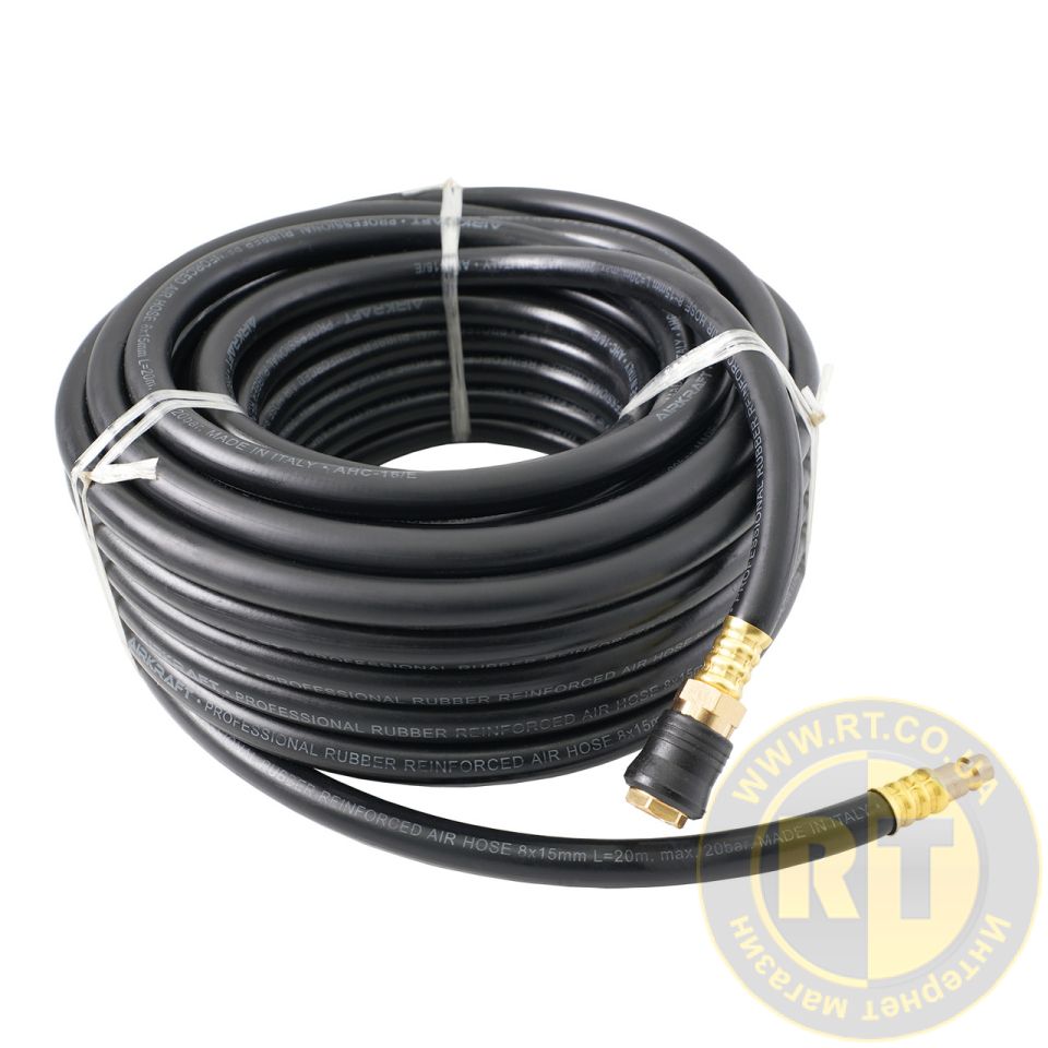 Шланг резиновый воздушный армированный (PROFI) 20 атм 10x17мм, 10м с латунными быстроразъемными соединениями AIRKRAFT AHC-16-I