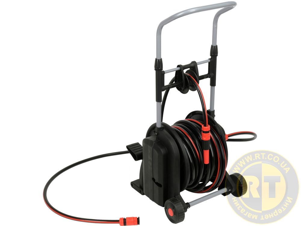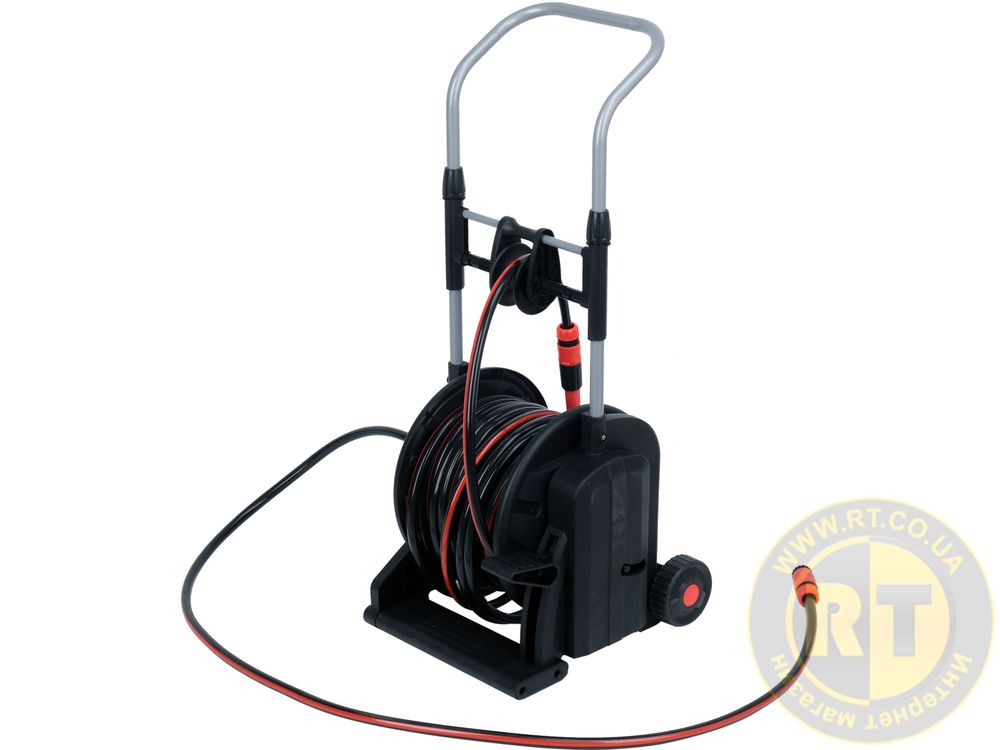 Широкая опора обеспечивает устойчивость тележки даже при вытягивании шланга.