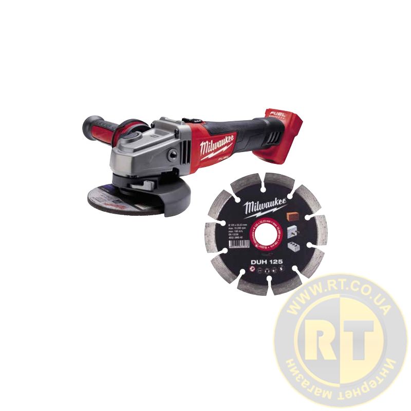 Шлифмашина угловая аккумуляторна MILWAUKEE, M18 FSAG125X-0, Ø125мм + Диск MILWAUKEE DUH 125 (10шт)