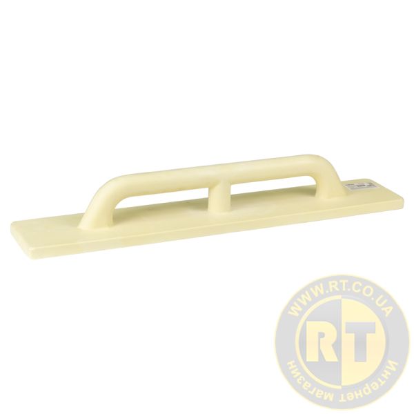 Терка представляет собой шероховатую подошву с рукояткой. Корпус изготовлен из полиуретана - он легкий, с низкой степенью истирания. Оснащена закругленной замкнутой рукояткой, которая не скользит в руке во время работы и повышает удобство использования. Что в сочетании с низким весом уменьшает усталость от длительных работ.