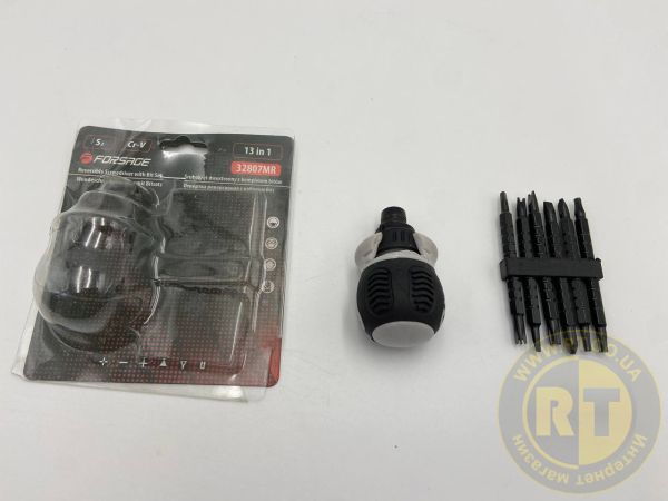 Реверсивна викрутка FORSAGE F-32807MR з набором спеціальних біт, в блістері. Призначена для робіт з кріпленням в процесі ремонту та монтажу. Інструменти виконані із якісної та міцної сталі. Матеріал відрізняється надійністю та довговічністю. Біти мають спеціальні насічки, завдяки чому в руків'ї можливо регулювати довжину, на яку утоплюється біта в руків'я. За рахунок цього модель допоможе швидко закрутити кріплення у вузьких місцях. Завдяки реверсивному механізму викрутки закручування та відкручування кріплення відбувається в два рази швидше. Ергономічна ручка з протислизьким покриттям забезпечує комфортну експлуатацію.