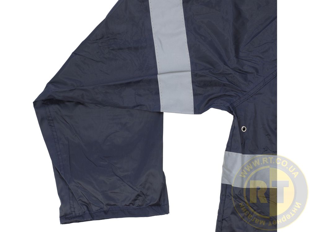 Двухсекционный дождевик со светоотражающими полосками для улучшенной видимости.