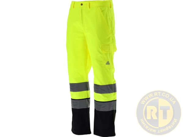 Использование широких 70-миллиметровых светоотражающих полосок значительно улучшает видимость силуэта в условиях слабого освещения, в темноте и при неблагоприятных погодных условиях. Контрастное сочетание цветов и черный материал ниже колен повышают износостойкость брюк в местах, особенно подверженных загрязнению и интенсивному использованию.