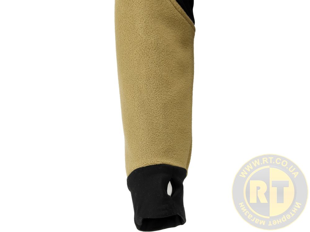 Основным материалом является сильный полиэстер с флисовой структурой, которая эффективно сохраняет тепло организма. Вставить материал - это упругая дышащая двусторонняя эластичная ткань. Это не мешает движениям и приятным на коже.