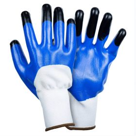 Перчатка защитная на трикотажной основе с полным нитриловым покрытием, 10,5", 120 пар, маслостойкая, утепленная, с твердым манжетом, синяя INTERTOOL SP-0001W