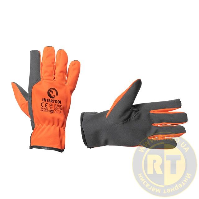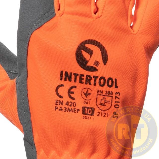 Перчатка кожаная, комбинированная, 10", из козьей кожи и флуоресцентной оранжевой ткани INTERTOOL SP-0173