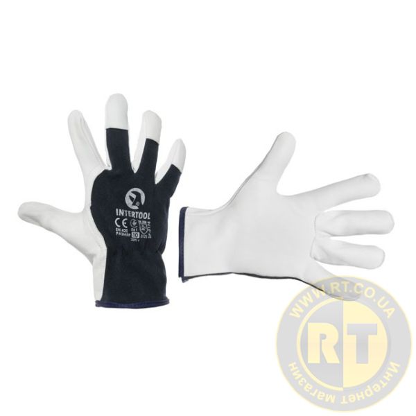 Перчатка кожаная, комбинированная, 10", из высококачественной овечьей кожи и ткани INTERTOOL SP-0174