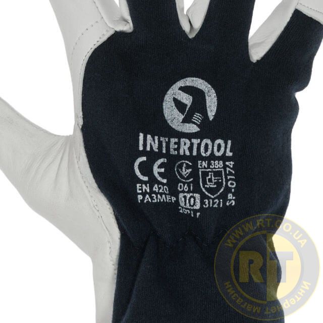 Перчатка кожаная, комбинированная, 10", из высококачественной овечьей кожи и ткани INTERTOOL SP-0174