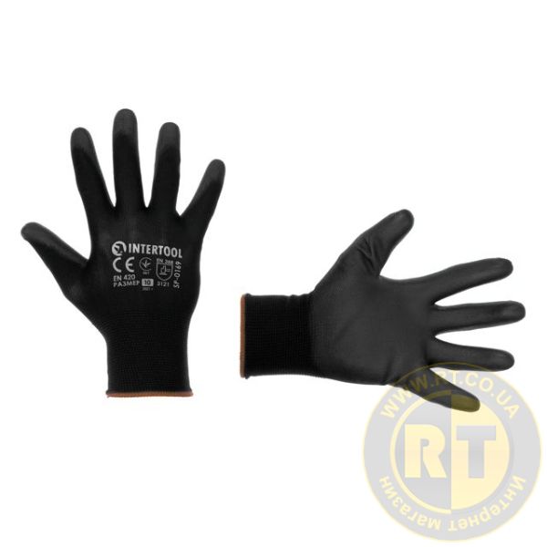 Перчатка трикотажная с покрытием из полиуретана, синтетическая, черная, 10" INTERTOOL SP-0169