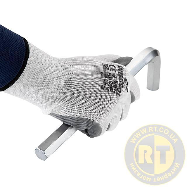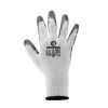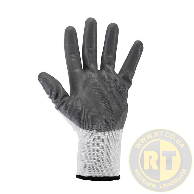 Ладони перчаток покрыты серым нитрилом для более стойкой защиты рук от загрязнений и механических повреждений. При этом перчатки не сковывают движений пальцев. Имеют вязанный манжет для фиксации на запястье против попадания вовнутрь пыли и мелких частиц.