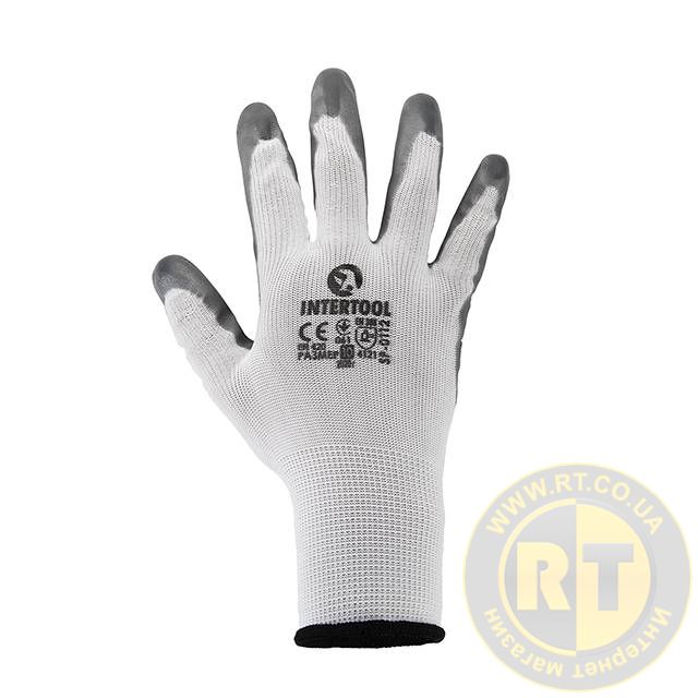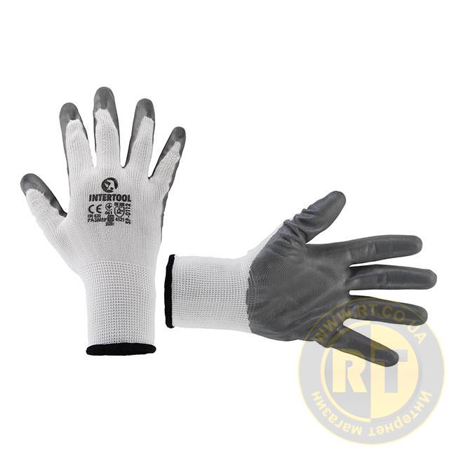 Перчатка трикотажная с серым нитриловым покрытием ладони, синтетическая, красная,10" INTERTOOL SP-0112