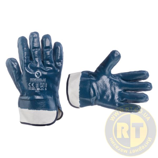 Перчатка защитная на трикотажной основе с полным нитриловым покрытием, 10,5", 120 пар, маслостойкая, утепленная, с твердым манжетом, синяя INTERTOOL SP-0001W