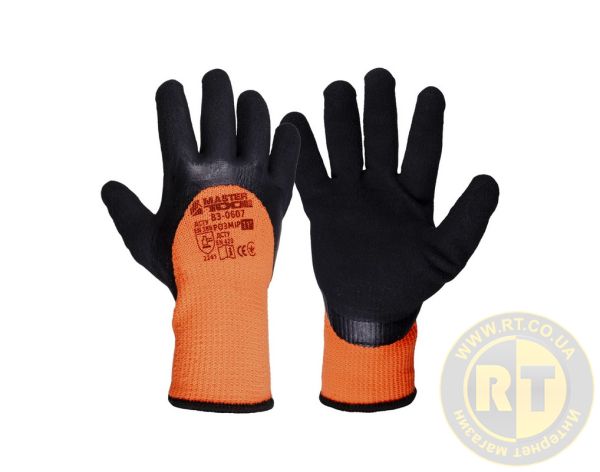 Перчатки акриловые утепленные с вспененным латексным покрытием ¾ 11" 12 пар оранжево-черные MASTERTOOL 83-0607doz