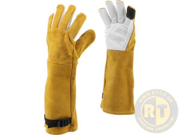 Длинные кожаные перчатки, предназначенные для садоводческих работ. Два слоя кожи в части захвата защищают руки от колючек деревьев и кустарников.