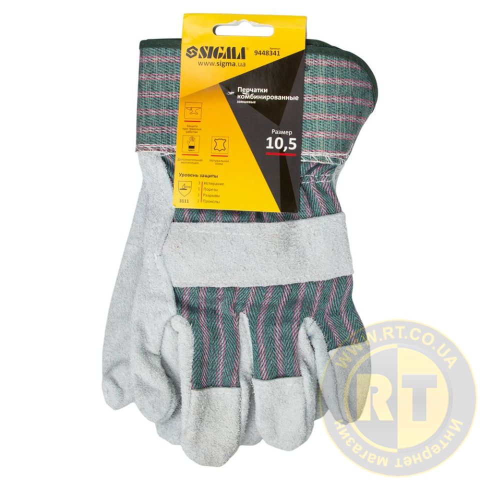 Перчатки комбинированные замшевые р10.5, класс АВ (цельная ладонь) SIGMA (9448341) предназначены для защиты рук от механических воздействий при проведении тяжелых работ.