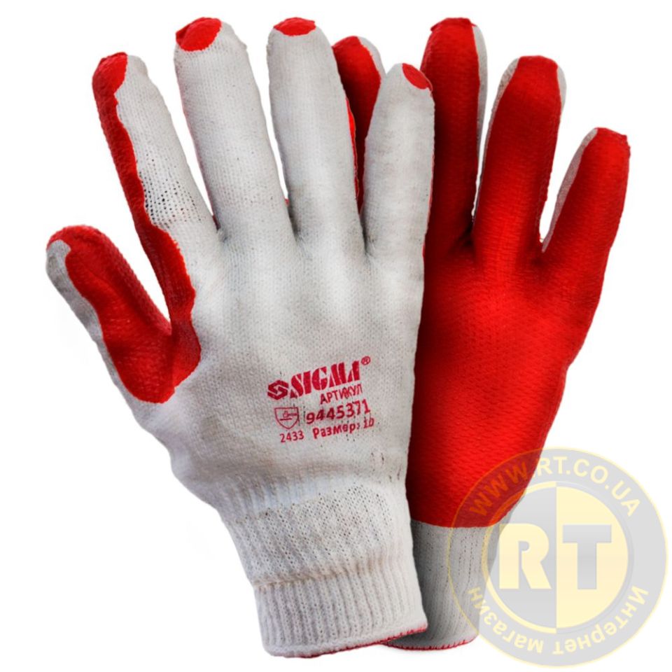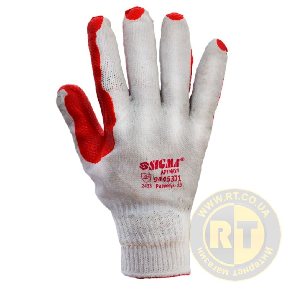 Перчатки стекольщика (манжет) SIGMA (9445371) - трикотажные с латексным покрытием для защиты рук от влаги и механических воздействий.